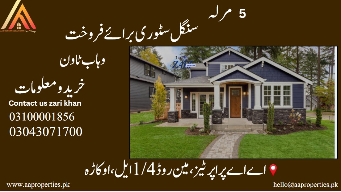 Discover this premium 5 Marla 1.5 storey residence located in the highly sought-after Wahab Town, Okara. This well-constructed home features a spacious layout including comfortable bedrooms, modern attached washrooms, and a functional kitchen. Situated in a peaceful, developed neighborhood with excellent security and easy access to local amenities, it offers the perfect balance of convenience and value for families.