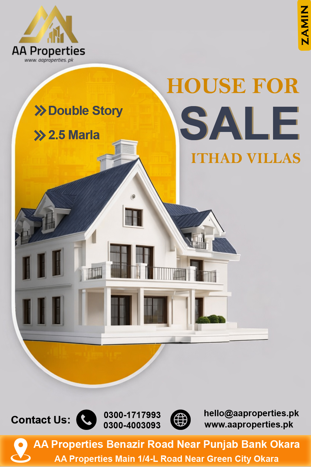 Modern 2.5 Marla double-story house for sale in Ittehad Villas, Okara. Secure gated community, premium finishes, and luxury living in a compact design.
