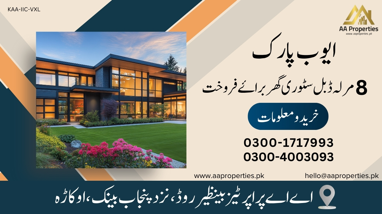 “Luxurious 8 Marla double-story house for sale in Ayub Park, Okara. Prime location, spacious layout, and modern features. Perfect for your dream family home!”