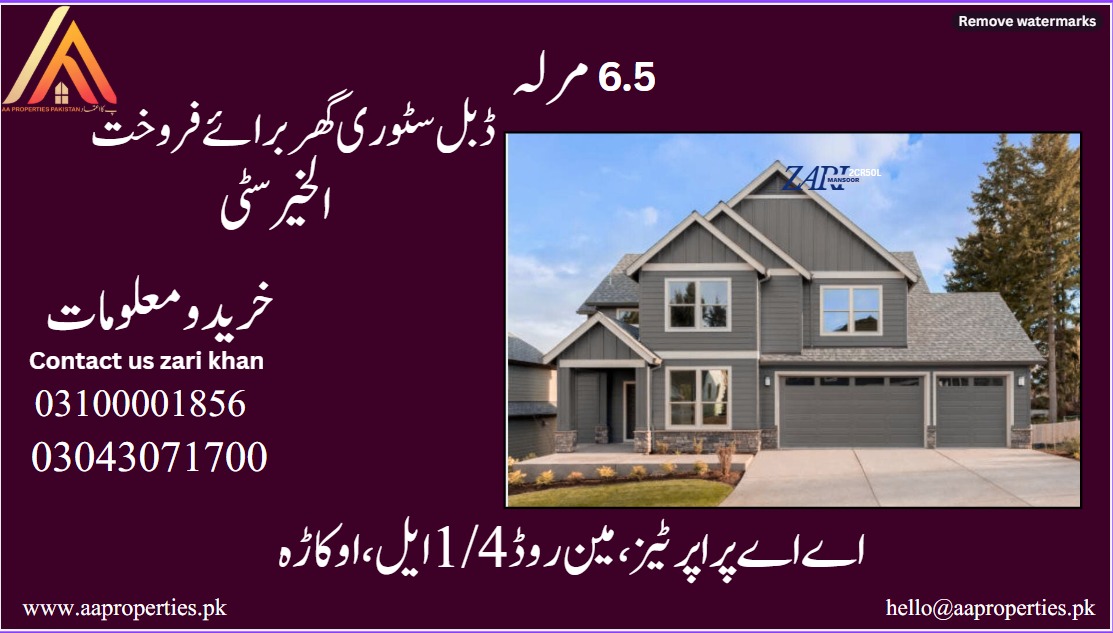 Luxurious 6.5 Marla double-storey house for sale in Al Khair City. Premium finishes, spacious layout, and prime location. Dream of living for 2 Crore 50 Lac only!