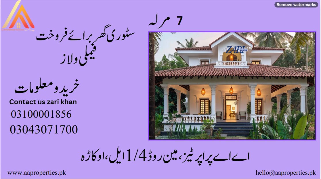 Luxury living at Family Villas! This 1.5 storey 7 Marla home features premium finishes & spacious layout. Prime location for just 2 Crore 75 Lac. Inquire today!