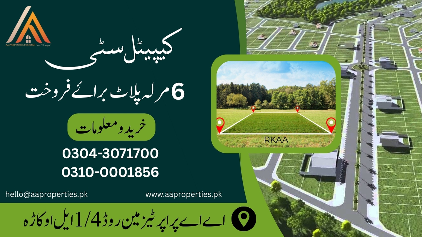 Secure a premium 6 Marla plot at Capital City Okara. Total cost is 30 Lac. Enjoy modern amenities, prime location, and a secure lifestyle today!