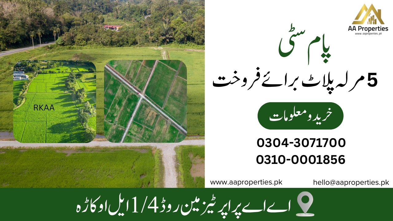 Secure a 15 Marla residential plot in Palm City, Okara. Ideal location with modern amenities, gated security, and a peaceful environment. Demand: 7 Lac per Marla.