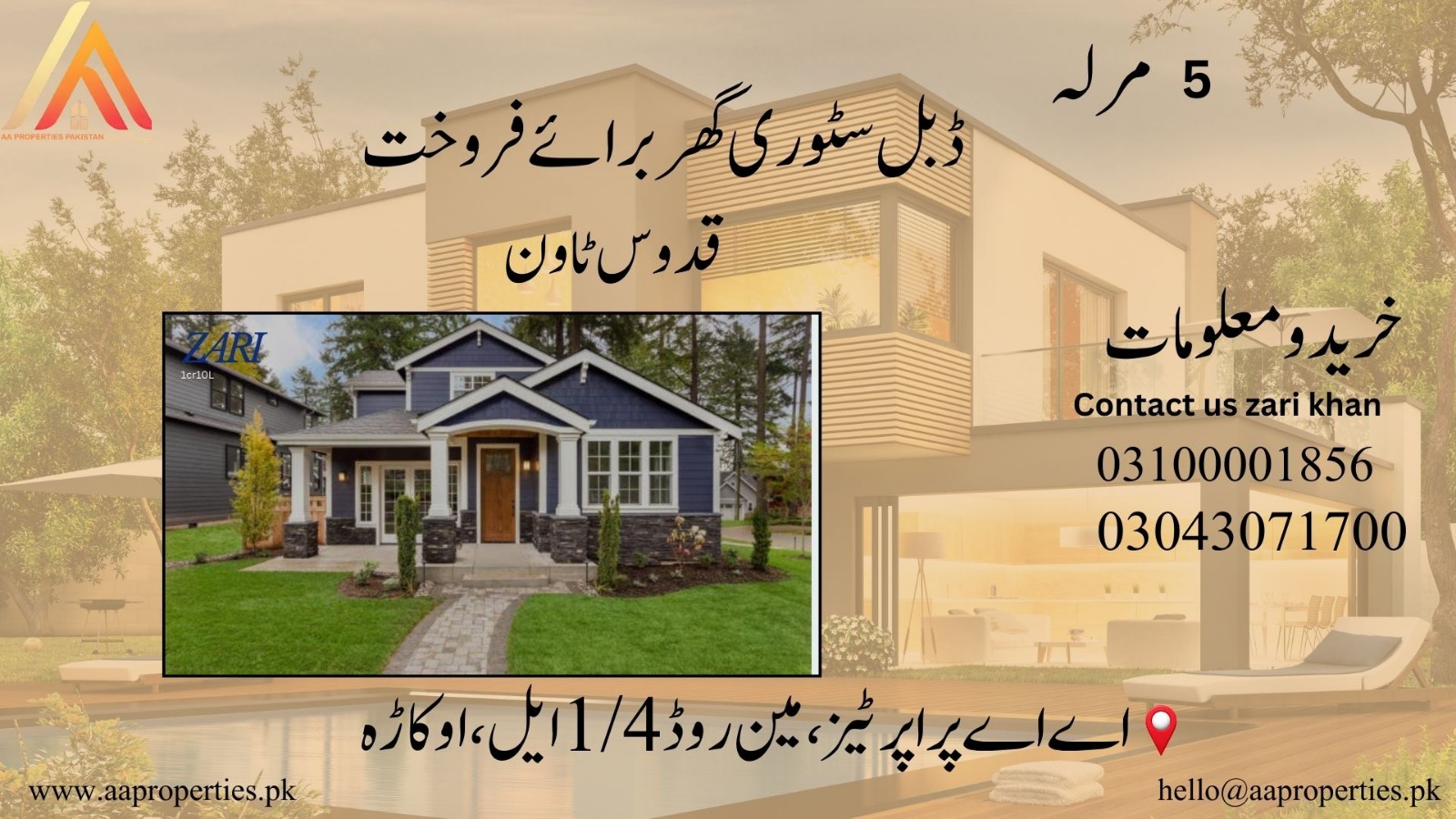 Invest in this solid double-story home in Qudoos Town, Gali 1. Well-built with ample space, it’s perfect for families seeking comfort and prime convenience.