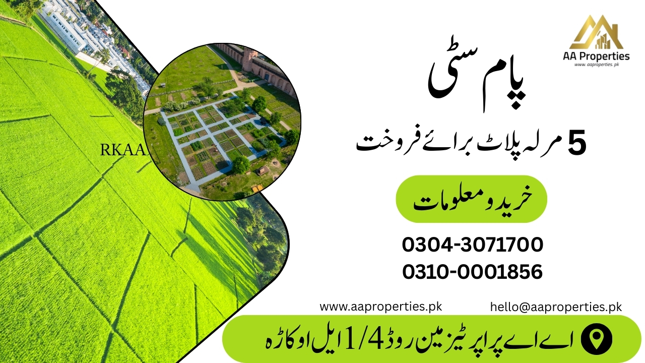 Secure a 5 Marla residential plot in Palm City. Ideal location with modern amenities, 24/7 security, and a peaceful living environment.