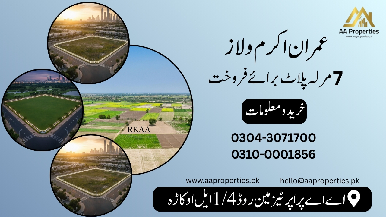 Secure this premium 7 Marla plot at Imran Akram Villas, Okara. Priced at 30 Lac/Marla, it offers top-tier location and high ROI potential. Build your dream home today!
