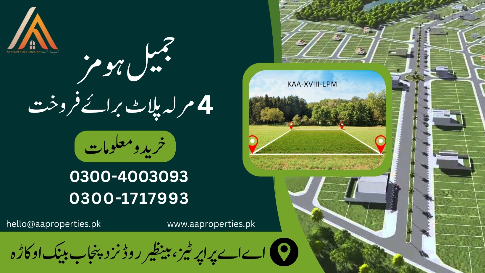 - Secure a 4 Marla residential plot in Jameel Homes, Okara. Located in the peaceful place ,this plot is ideal for a modern family home.