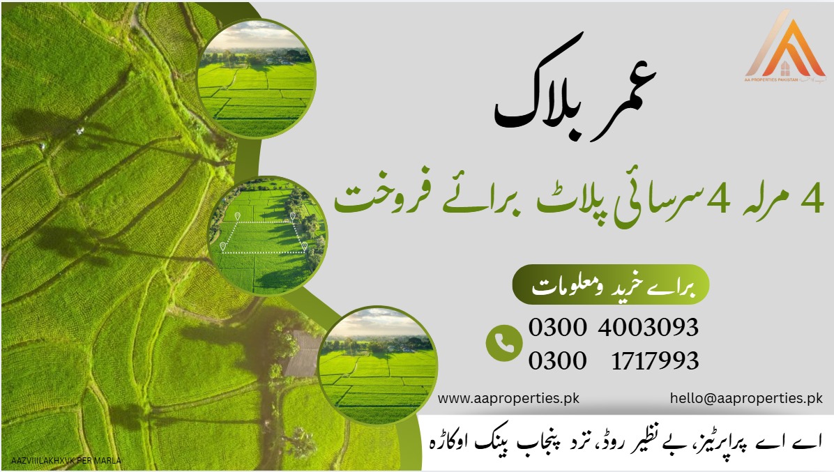 - Prime 4.4 Marla residential plot for sale in Umer Block, Okara. Enjoy a secure gated community with modern amenities. Perfect for investment or your dream home.