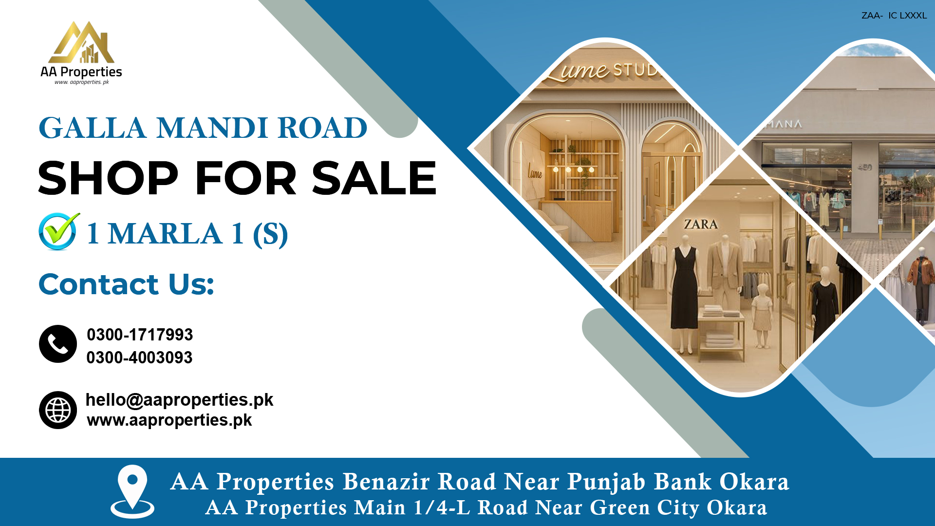 Buy a commercial shop in Galla Mandi. Prime business location, high footfall area, best opportunity for investment and business use.